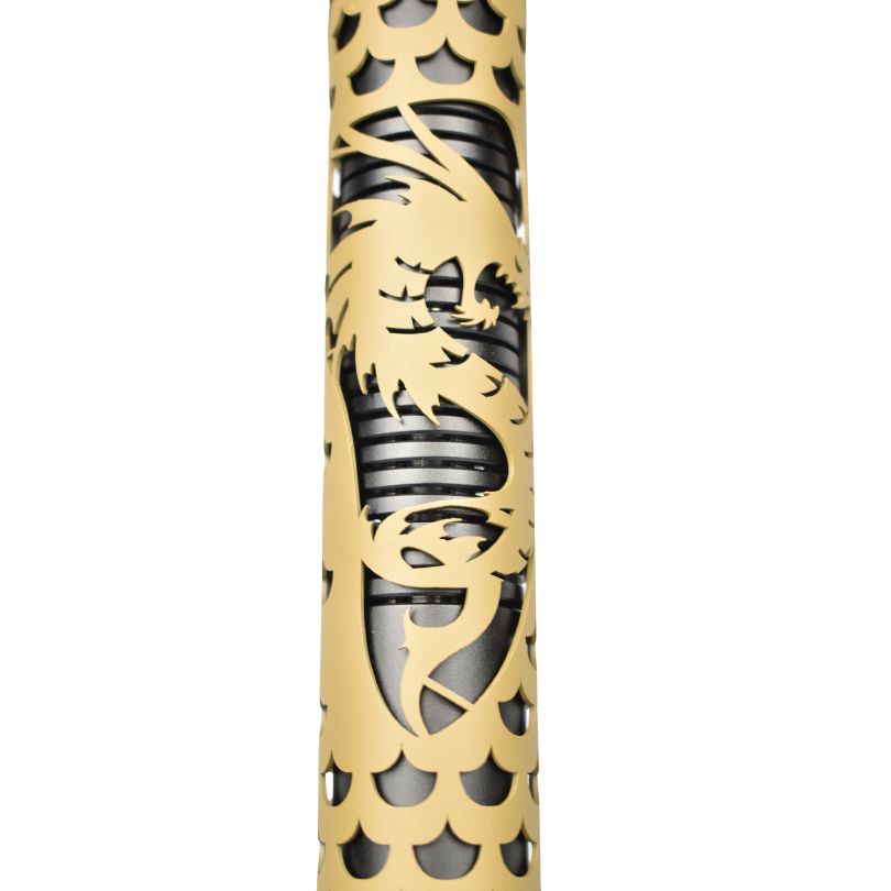 En segundo lugar, el mástil está recubierto de un embellecedor soft con diseño de un dragón y simbología asiática tratado y pintado
