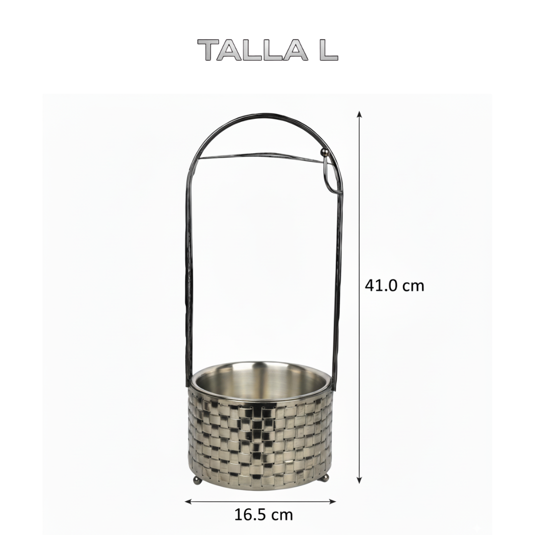 Su cuerpo con relieve trenzado aporta un toque artesanal único, mientras que el asa ergonómica grabada permite transportar los carbones de manera cómoda y segura.