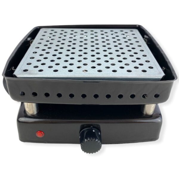 Está compuesto por una chapa metálica de gran calidad y resistencia que recubre y protege el mecanismo del hornillo y unas resistencias fabricadas en acero en espiral. esta ultima pieza es la que se calienta y sobre la que encendemos nuestro carbón vegetal natural.