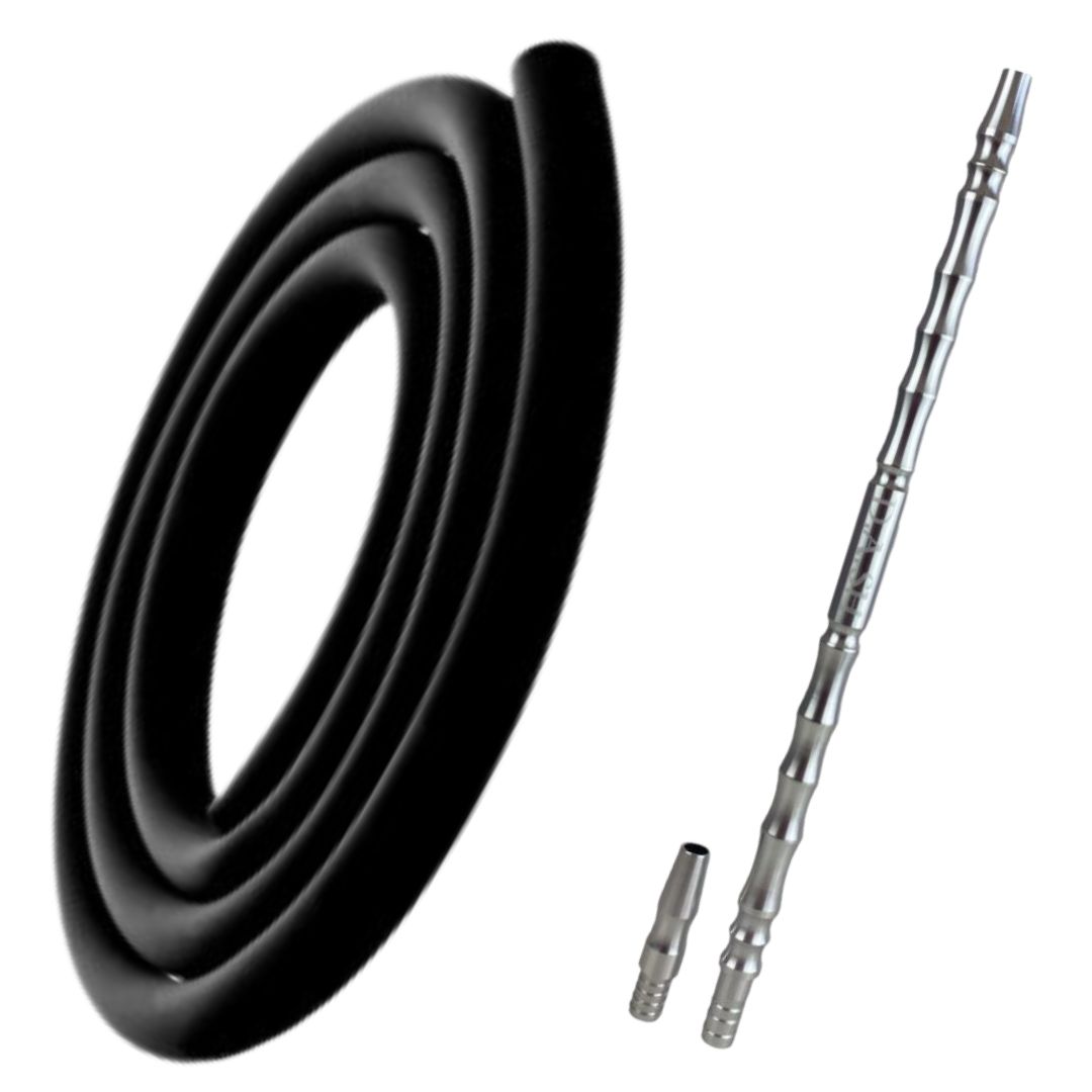 Respecto a sus características, tiene una medida de 180 cm aproximadamente y gracias a su diseño es compatible con todo tipo de  conectores y boquillas de cachimbas.